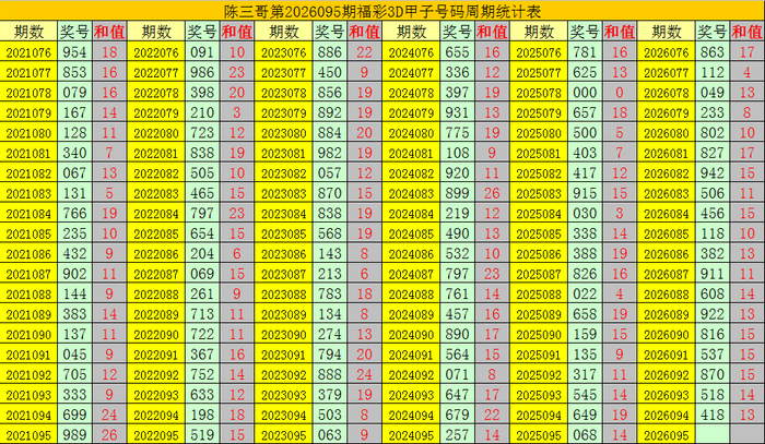 第2021年-第2025年的第094期奖号分别为:699、198、503、679、649,第2021年-2025年的第095期奖号分别为:989、519、063、257、068。其中: